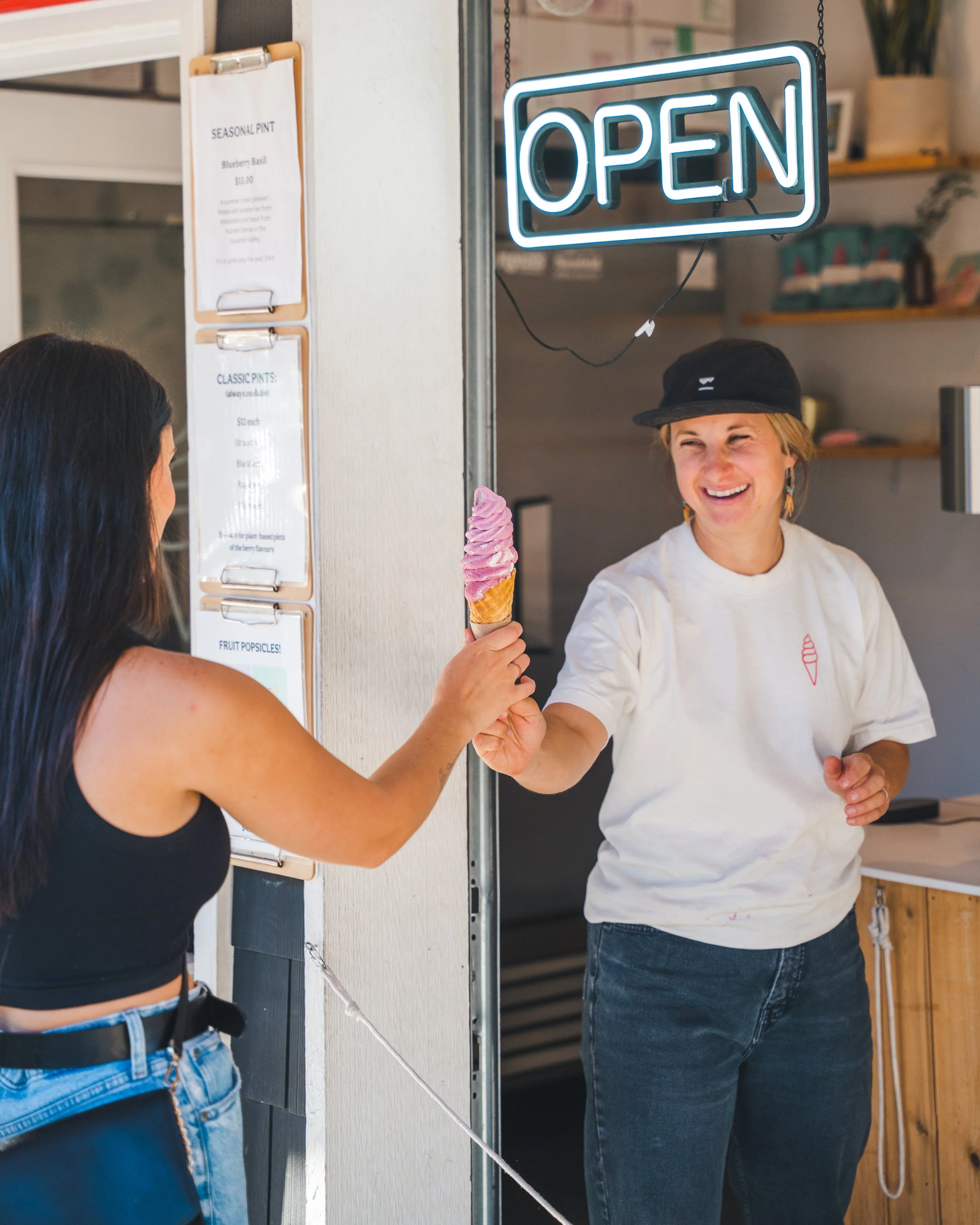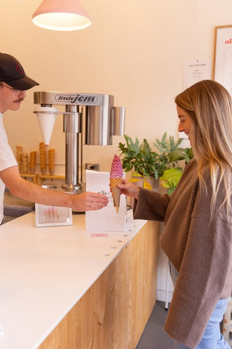 Alice and Brohm started as a little ice cream trailer, doling out ice cream at locations and events around Squamish. We now have 2 locations in Squamish and still operate our ice cream trailer during the summer. We are a values-based business, striving to connect and grow community through ice cream in a unique and honest way.